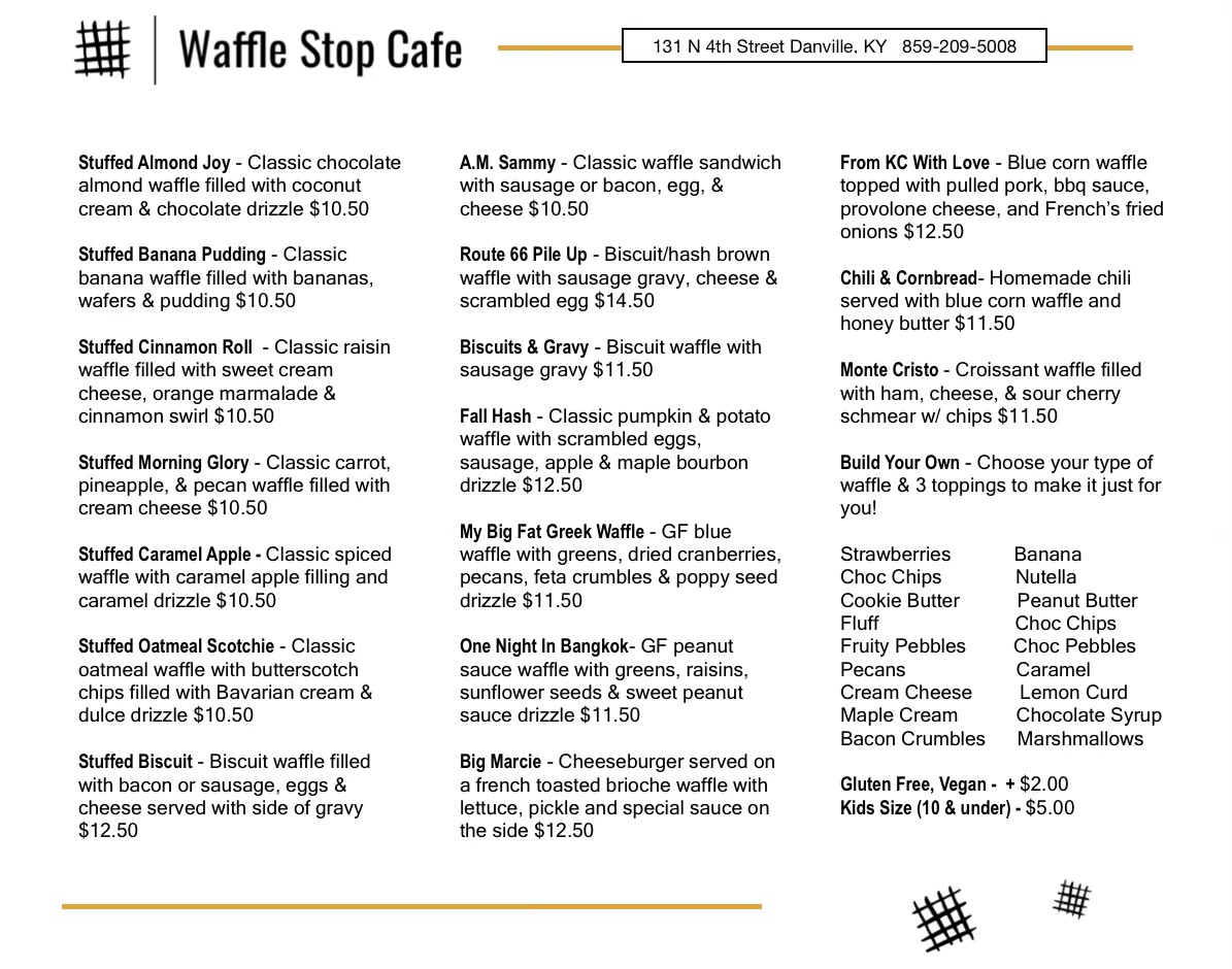 If you're in the mood for a delicious bite, the Waffle Stop Cafe Menu is where you'll want to be. Located at 131 N 4th St in Danville, KY, this cozy spot offers a variety of mouthwatering options, with waffles being the star of the show. From sweet to savory, each dish is crafted with care, perfect for breakfast, brunch, or a casual lunch.